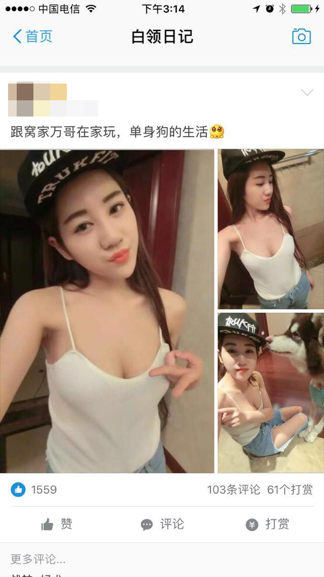 从产品的形式来看,支付宝圈子是要干掉陌陌的节奏。如同当时陌陌以“约炮”著称一样,选择在周六晚间上线的支付宝圈子功能,更是把用户的情色荷尔蒙心理琢磨得很透彻。在开放的校园日记和白领日记两大类社交圈子中,充斥着大量的露点美女照片,一些用户甚至公开叫嚣,是否有土豪来给自己点赞或评论,毕竟芝麻信用大于750分的门槛是很高的,需要长时间的购物消费积累能实现的。更重要的是,用户要给社交圈子的照片赞赏是需要拿出真金白银的。