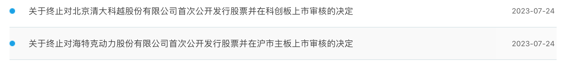 在上周,海特克动力股份有限公司和北京清大科越股份有限公司均默默撤回了自己的首发申请,前者是沪市主板,后者为科创板。