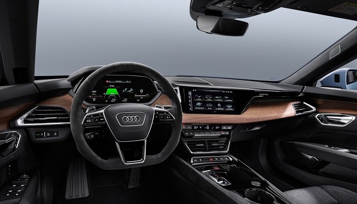 外观设计上,奥迪e-tron GT基本于RS车型保持相同风格,但在侵略性上有所降低。材质则选择包括碳纤维、铝型材和高强度钢等多种材料进行制造,并在内饰方面继续延续这种多材质混用的方式以提升质感。不过,e-tron的车机系统未见明显亮点。