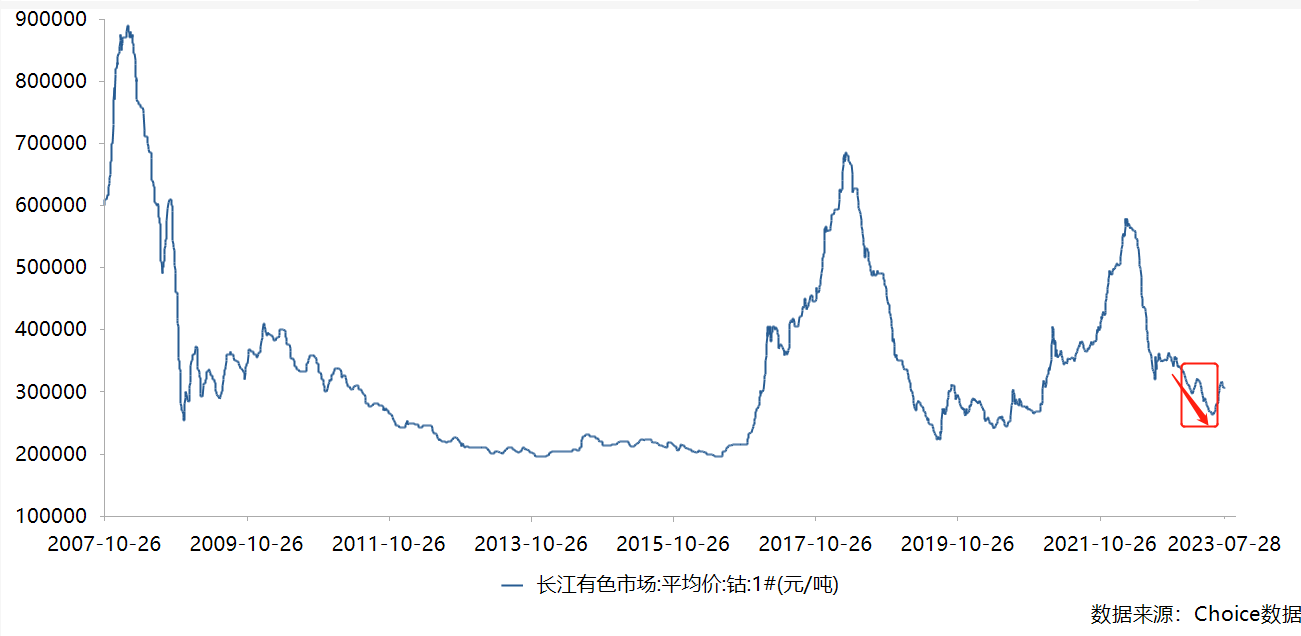 净利下滑幅度远高于营收下滑幅度。这主要缘于公司毛利下降。寒锐钴业主营业务为金属钴粉及其他钴产品的研发、生产和销售。Choice数据显示,钴金融平均价格2022年末达34万元/吨,进入2023年以来价格一路走低,最低降至26.35万元/吨,降幅高达22.5%。