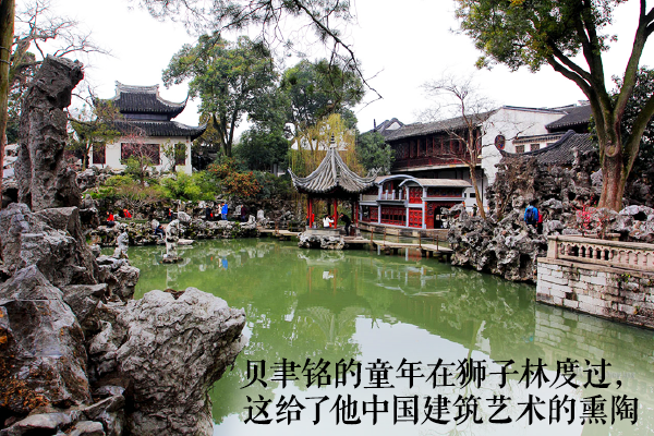 贝聿铭生来与建筑有缘。他童年时居住生活的狮子林是苏州四大名园之一,该园林由贝聿铭的叔叔颜料巨商贝润生出巨资购得,解放后捐献给了国家,如今是世界文化遗产、全国重点文物保护单位。