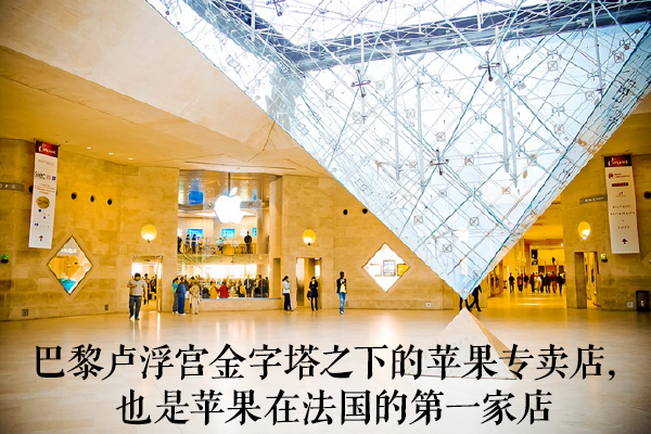 在苹果专卖店的整体设计中,一贯信奉“好的艺术家抄袭创意,伟大的艺术家窃取灵感”的乔布斯,也大量“窃取”了贝聿铭的设计灵感。比如简洁;比如用玻璃作为材料;比如注重光线、空间和几何图形的配合……这都是贝聿铭的经典设计风格,也都被乔布斯借鉴在了苹果专卖店的设计。而苹果在法国巴黎的专卖店,则干脆开到了贝聿铭在巴黎卢浮宫的倒立玻璃金字塔之下。