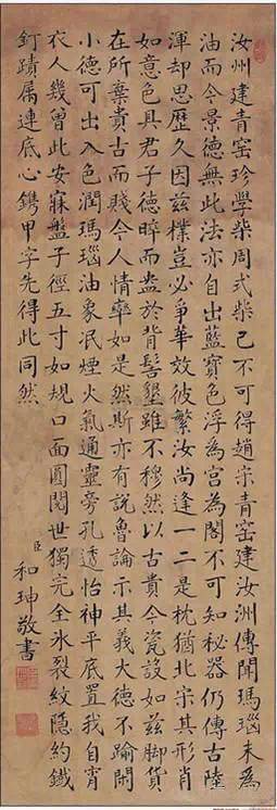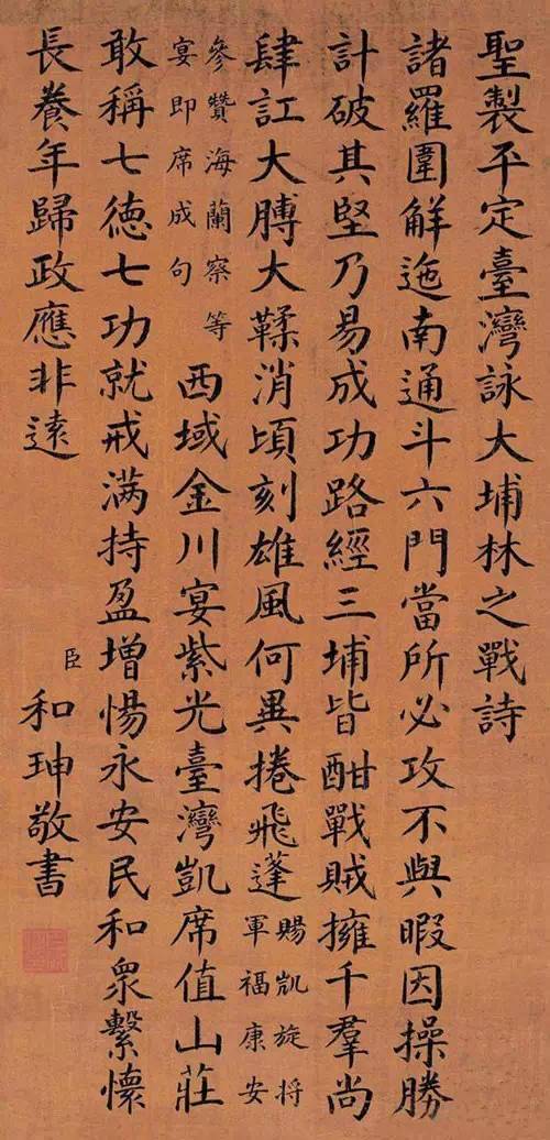 和珅在书法、诗文上有很高造诣,他的字和乾隆相似到了以假乱真的地步。