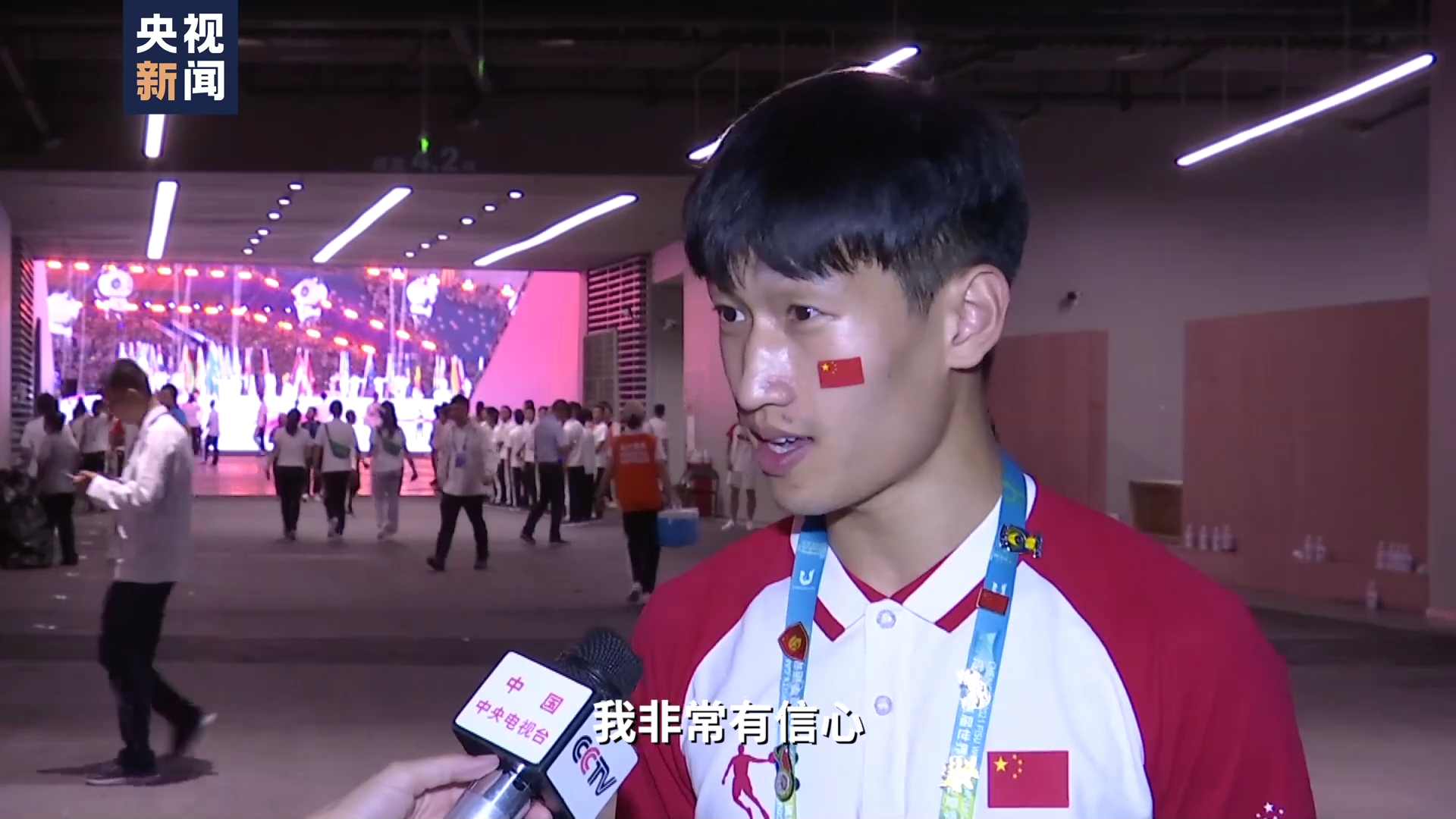 成都第31届世界大学生夏季运动会中国代表团跆拳道运动员 胡明达:我非常有信心,我特别相信自己,我准备这一刻已经准备很久了,已经蓄势待发了。我相信我有能力去争夺第一,为国争光,升国旗、奏国歌,站在最高领奖台。