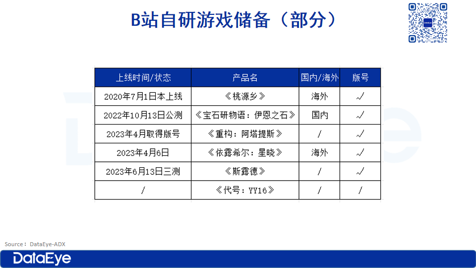 根据DataEye研究院不完全统计,B站自研游戏及版号储备情况,如下:
