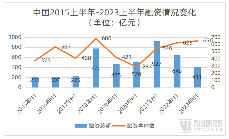 从数据看,2023上半年医疗行业融资总额是2018上半年以来最低点,仅有411亿元,较2022上半年减少237亿元,降幅约37%;较巅峰时期的2021上半年减少516亿元,降幅约56%。
