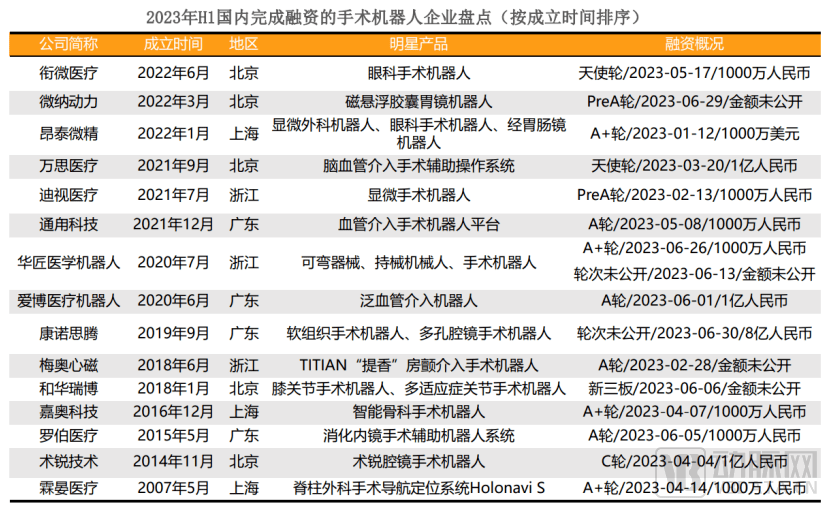 从行业看,生命科学上游、高端医疗器械上游、手术机器人、眼科耗材、脑科学、AIGC等领域是上半年融资的热门领域。