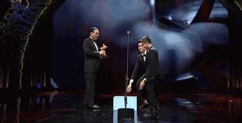 和曾国祥手中接过了金马奖的“最佳新导演”奖项▼