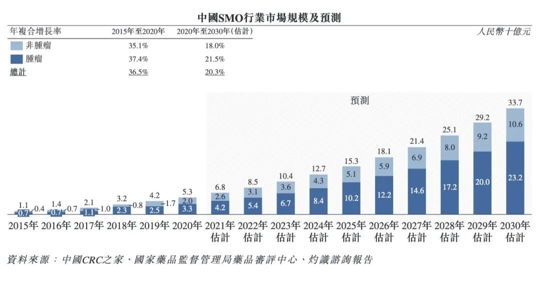 2015年为11亿元,2020年达到53亿元,年复合增长率为36.5%,以肿瘤药物临床研发需求为主。