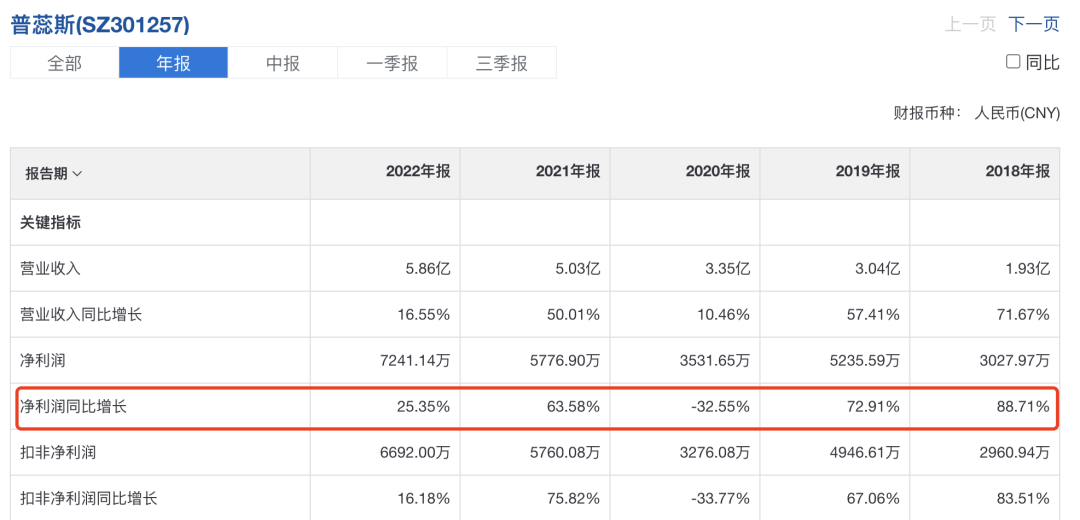 然而,自2022年开始,情况不再乐观。2022年上半年,普蕊斯实现营业总收入2.45亿元,同比+9.09%;归母净利润1942.57万元,同比-28.93%,主要原因被归为疫情。