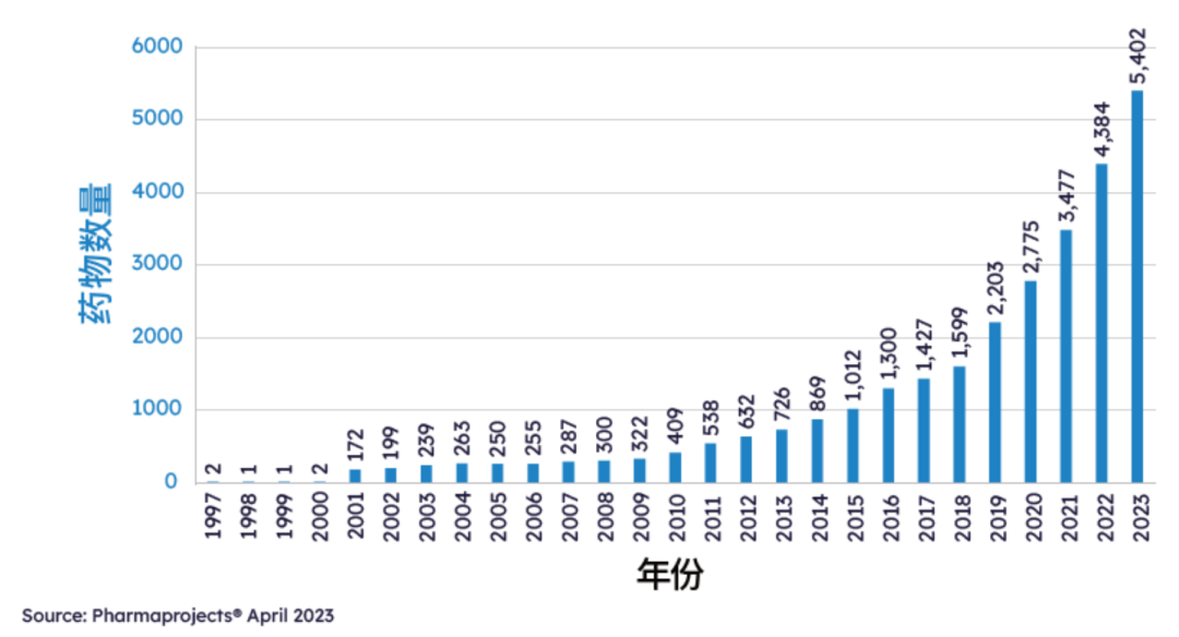 2023年4月,据Pharmaprojects数据显示,中国目前共有5402条药品管线,同比+23.22%,占全球管线数量的23.6%,排名全球第二。