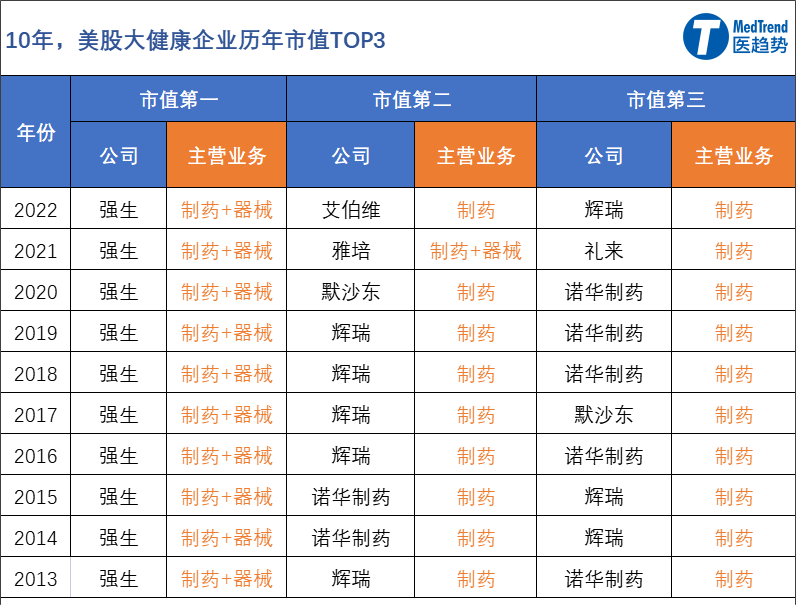 01、2013-2022:市值领跑不止十年,强生、辉瑞、诺华靠“业绩”撑起市值前三