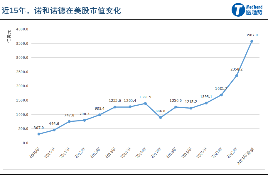 诺和诺德:三年内股价涨幅近150%,有望成为第二个市场破4000亿美元的纯药企