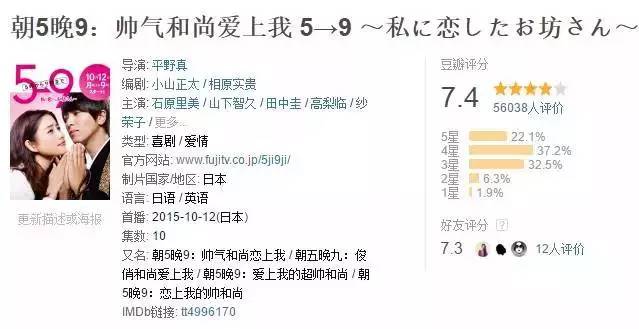 比如去年的《朝五晚九:帅气和尚爱上我》,估计这个放在我国吃枣药丸,三观和路数统统对不上的。而且日剧中常用的谐音梗和日剧跑都是亮点和精髓,脱离了这些“梗”的改编真的会好看吗?