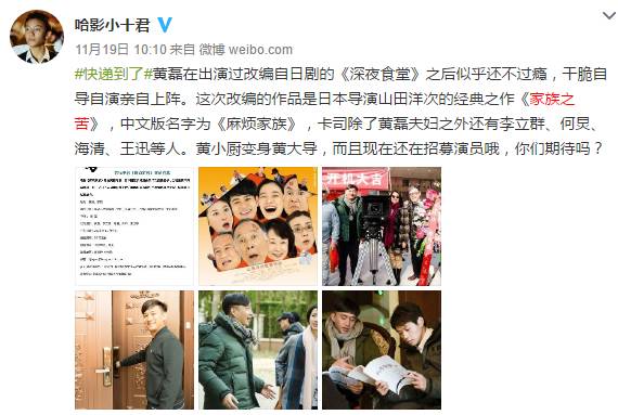 说到黄小厨,这位亲可是不简单,演完《深夜食堂》之后似乎还不过瘾,干脆自导自演,改编了日本导演山田洋次的《家族之苦》,中文版已经开机,名字叫《麻烦家族》。