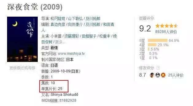 此外,小十君还发现一个问题。大部分日剧是10集左右,每集60分钟左右,也有《深夜食堂》这种25分钟左右一集的。