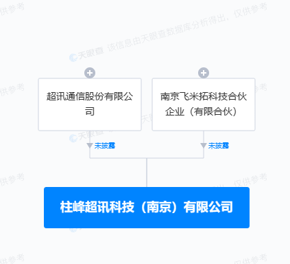 7月31日,天眼查显示,近日,柱峰超讯科技(南京)有限公司成立,注册资本1000万元人民币,经营范围包含:光通信设备制造;卫星移动通信终端制造;5G通信技术服务;智能车载设备销售等。股权穿透显示,该公司由超讯通信、南京飞米拓科技合伙企业(有限合伙)共同持股。