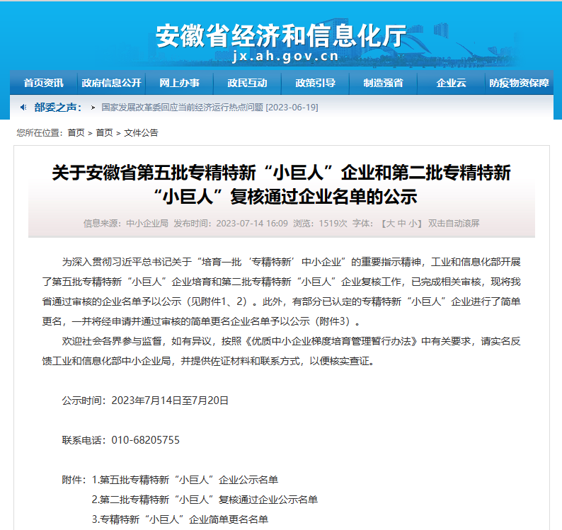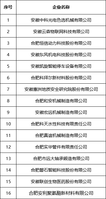 近期,安徽省经信厅公示第五批国家专精特新“小巨人”企业,其中肥西县4家企业上榜,分别是安徽联创生物医药股份有限公司,合肥安利聚氨酯新材料有限公司,合肥磐石智能科技股份有限公司,合肥市远大轴承锻造有限公司。