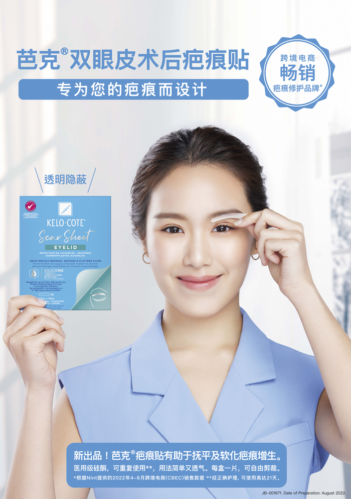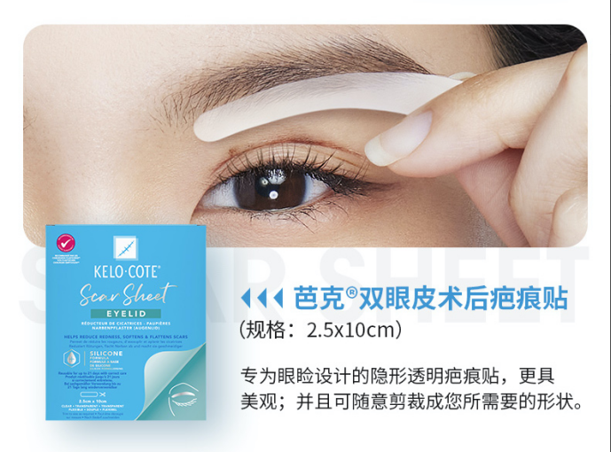 近年来,双眼皮整 形成为了越来越多人关注的话题,随之而来的便是关于双眼皮修复手术后的疤痕问题。针对这一问题,国际医药保健集团Alliance Pharma PLC(联合康药集团)旗下知名品牌KELO-COTE®芭克®推出了新品——KELO-COTE®芭克®疤痕贴,这其中有一款专门针对双眼皮术后的疤痕贴。