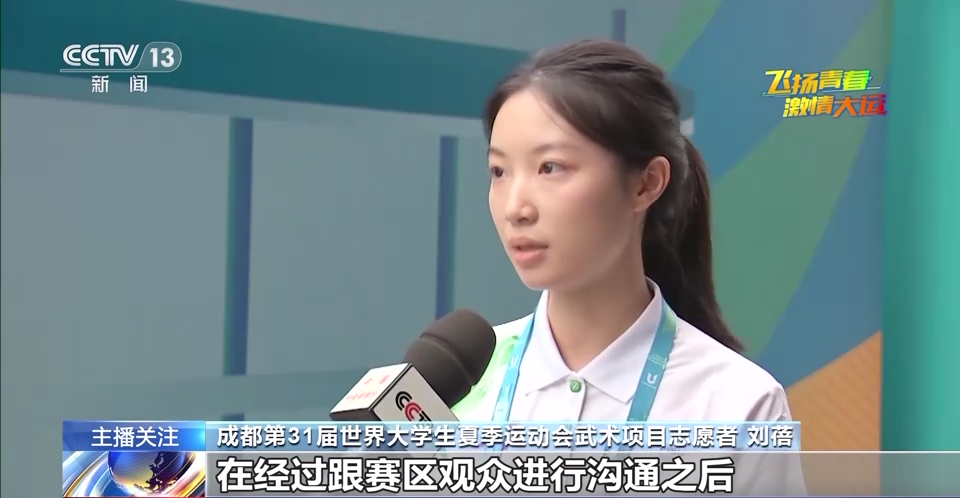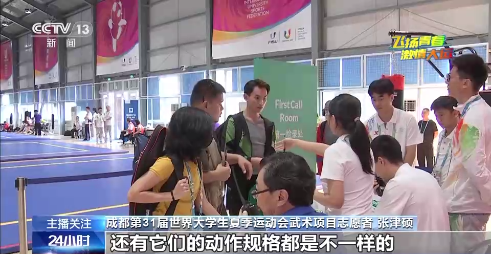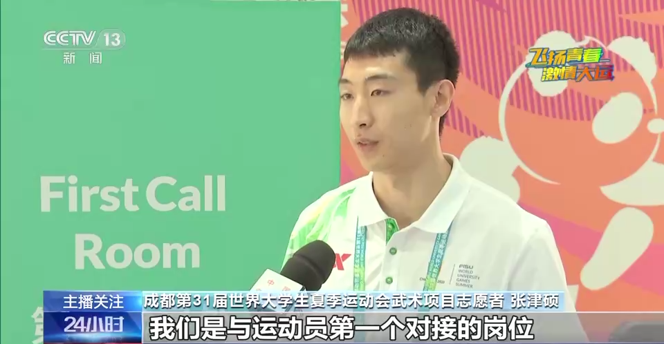 成都第31届世界大学生夏季运动会武术项目志愿者 张津硕:运动员从整个参赛开始,我们是与运动员第一个对接的岗位。
