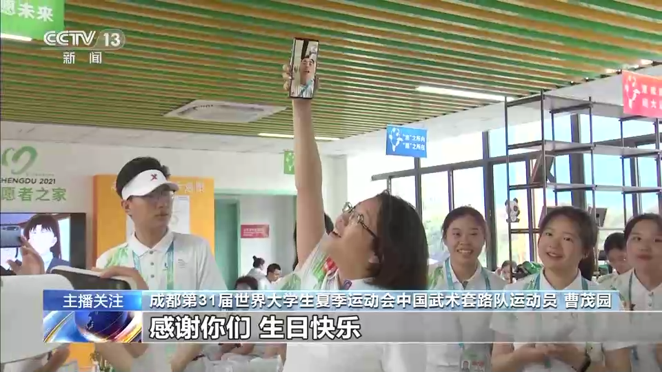 成都第31届世界大学生夏季运动会中国武术套路队运动员 曹茂园:感谢永远可爱的志愿者,是你们的服务和支持才让这个赛场这么的漂亮和美好,感谢你们,生日快乐!