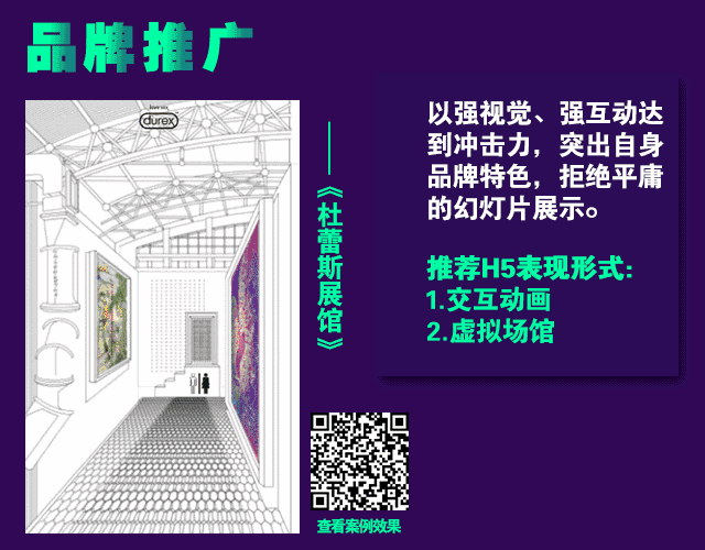 下面以淘宝、腾讯、杜蕾斯等品牌案例为例,根据传播目的整合出6种推荐的H5表现形式:
