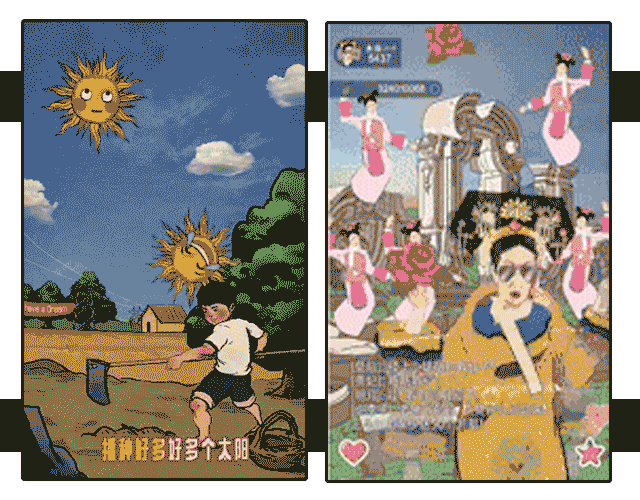 在这个H5火了后,相继出现了很多类似的热门案例,比如百度的《出来种太阳,迟早要还的》和华为的《老佛爷圆明园直播》。