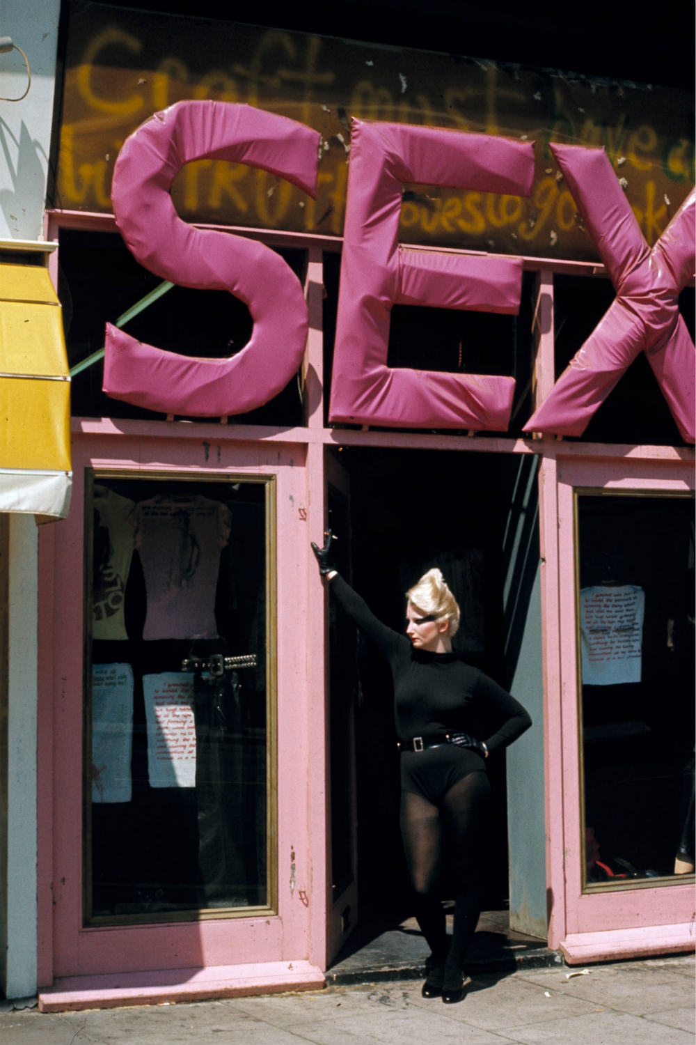 皮革、橡胶、乙烯基塑料等非常规材料也用到衣物制作中,使人联想起性暴力与性变态。Vivienne Westwood在伦敦国王大道上开出的商店“性”(Sex)打出的口号就是“为办公室设计的相较服饰”。常客大多是Sex Pistols粉丝,他们留莫西干鸡冠头、穿紧身裤子、等铆钉皮衣。
