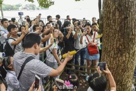 杭州西湖边有一松鼠喂食点,游客为了吸引松鼠以便拍照,用长杆串着玉米喂。结果,年初还体态轻盈的小松鼠不见了,取而代之的是长得像龙猫一样的胖鼠。