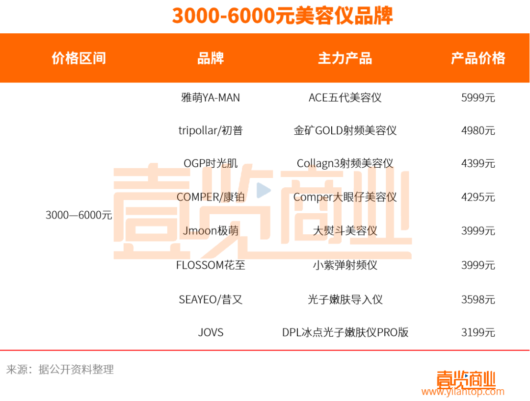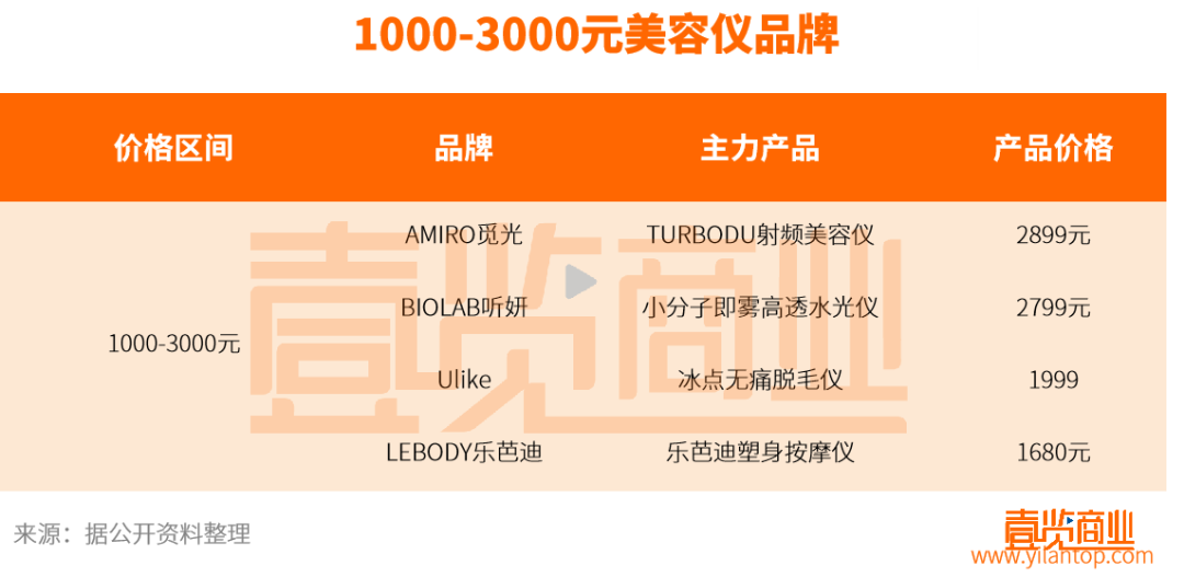 最后,只有一家品牌定价在1000元以下,为mesmooth慕苏,其主力产品mesmooth面部导入仪定价为299元。