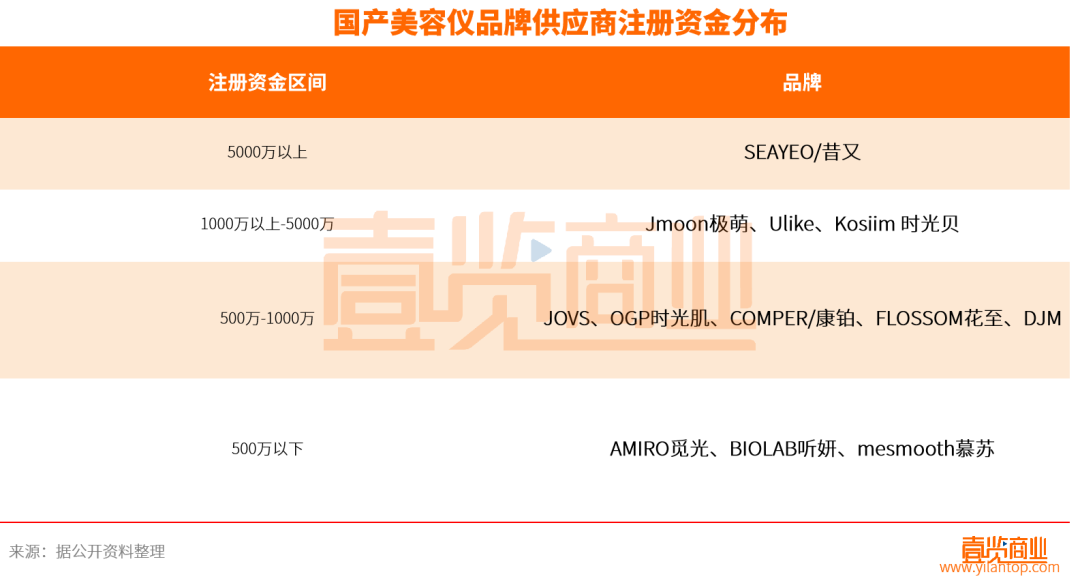 最后供应商注册资金在5000万以上的仅有1家品牌,为SEAYEO/昔又,供应商为固安翌光科技有限公司,注册资金为3.75亿元。
