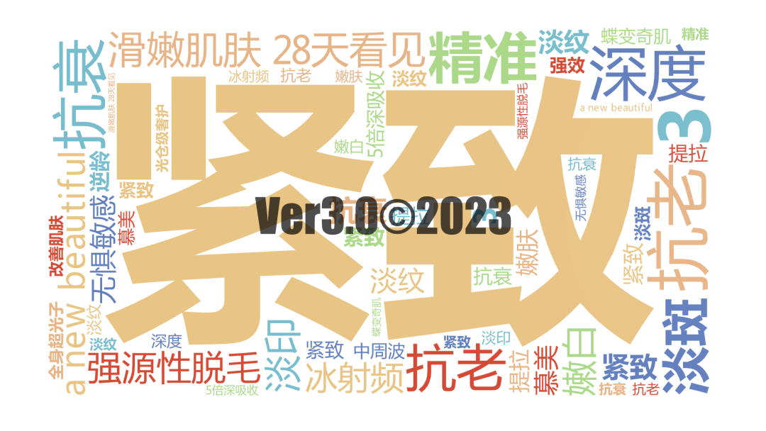 虽然差价巨大,但是各个品牌的主力产品功能特性差别却不是很大。根据对各个品牌主力产品的关键词统计过后,紧致、抗老、抗衰出现的频率极高,其中以紧致一词出现频率最高,达到5次占比达25%。