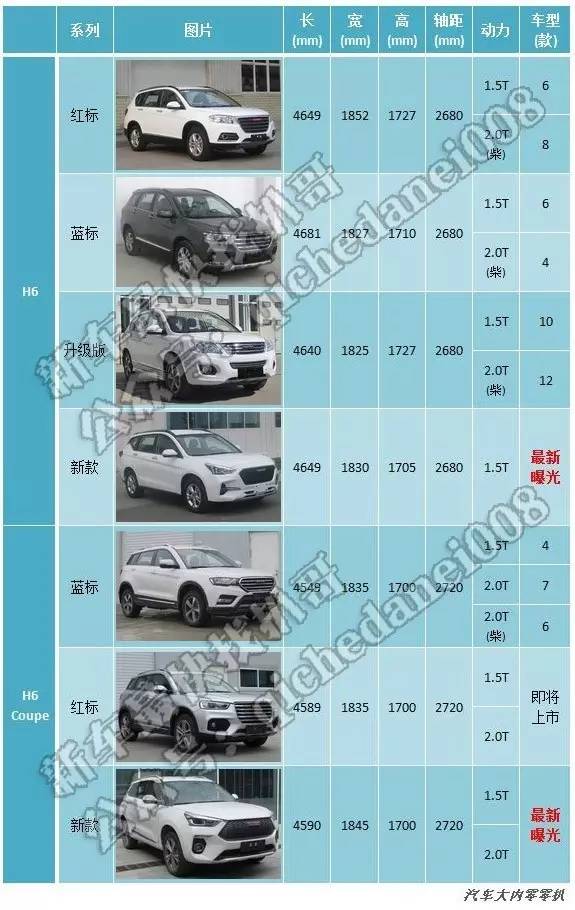 而今天最新曝光的这款新车从申报资料上来看,尾部被标注为“H6”,不过因为其整车设计都师承H6 Coupe,因此我们还是将他划入这个族群进行对比。