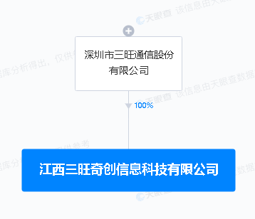天眼查APP显示,近日,江西三旺奇创信息科技有限公司成立,注册资本1000万元,经营范围包含:通信设备制造;数字技术服务;移动通信设备制造;5G通信技术服务等。天眼查股权穿透显示,该公司由三旺通信100%控股。