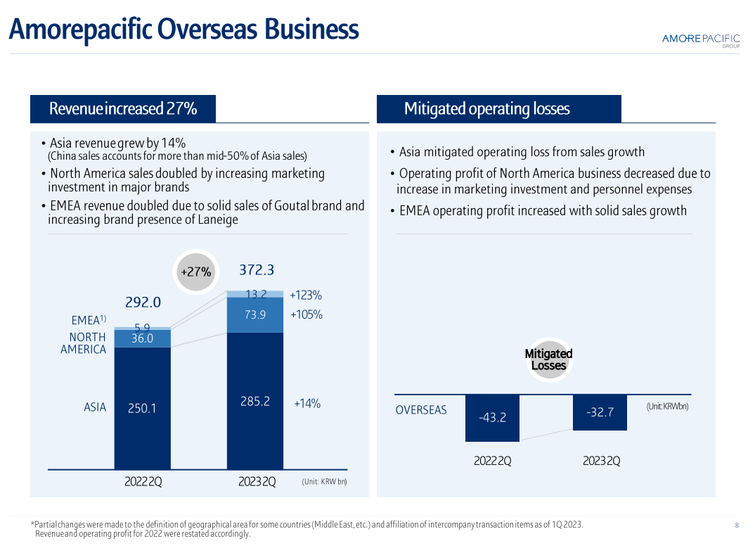 这种通过提升品牌体验、推新品以及优化产品组合的方式,让爱茉莉太平洋旗下品牌在中国市场提升了盈利能力。财报中提到,在亚洲的营业活动减少了销售增长带来的营业损失。