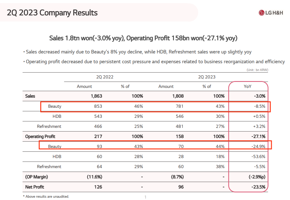 02 LG生活健康中国上半年录得21.4亿元营收,但同比下滑9.1%