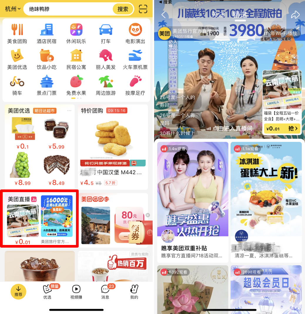 其实早在2020年,美团就曾试水直播,推出“美团Mlive直播”小程序,商家自播卖团购商品,还曾打造过“旅行直播”卖景区门票,但均未溅起太多的水花。