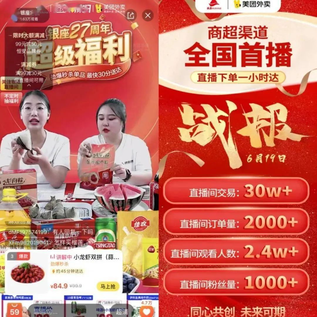 两个月前,银座联合抖音头部直播间推出“心动五一”本地专场团券活动,联动124家店铺同步直播。据官网发布,直播专场GMV达1000万元,创下银座直播新记录。