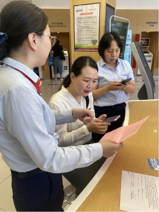 宣传活动期间,浦发银行台州临海支行抓好阵地宣传,营造良好氛围。以营业网点为宣传主阵地,通过张贴公告、摆放宣传资料等方式开展常态化宣传。同时,网点工作人员向前来办理业务的客户现场讲解大额现金管理试点政策问题,并开展厅堂微沙龙,普及人民币现金知识、引导公众自觉遵守法律法规。