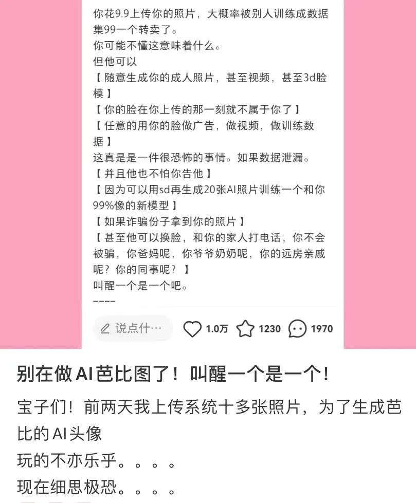 在社交媒体平台,就有不少网友被劝退,“别再做AI芭比图了,叫醒一个是一个……玩得不亦乐乎,现在细思极恐。”
