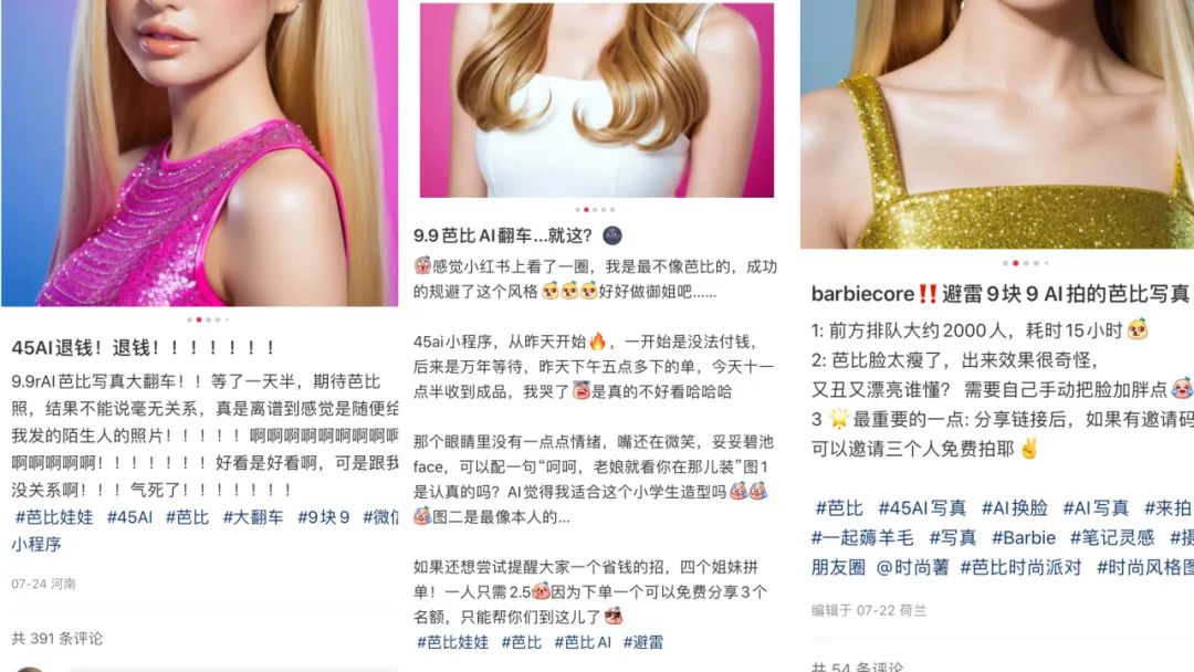 事实上,在“芭比AI写真”火起来的短短几天内,争议已随之而来。最初传出的“吐槽”聚焦于用户体验,不少用户表示排队时间过长或是邀请码无法使用,也有网友对其生成的写真并不满意,其中就包括静怡。