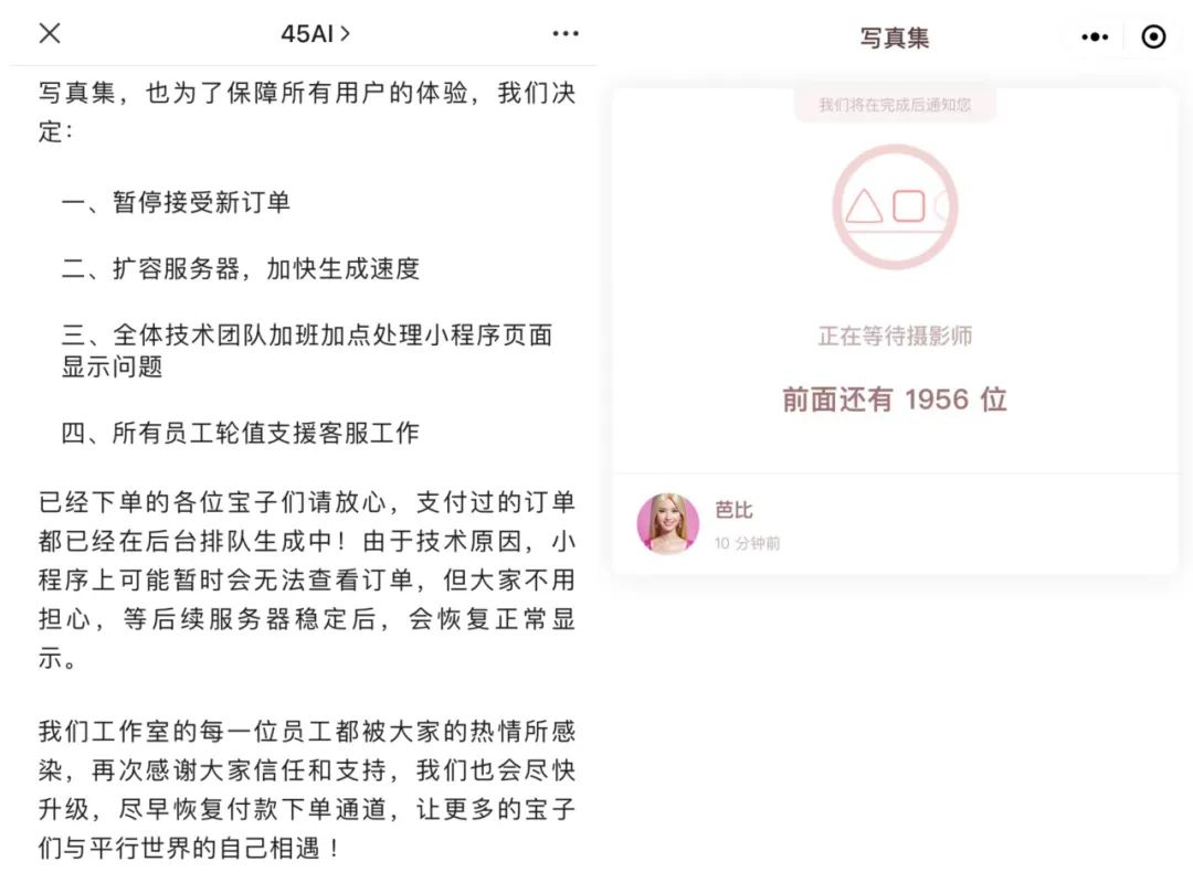 而如今,尽管两款热门“AI写真”小程序均发布了新公告,“静怡们”也难再做回头客。