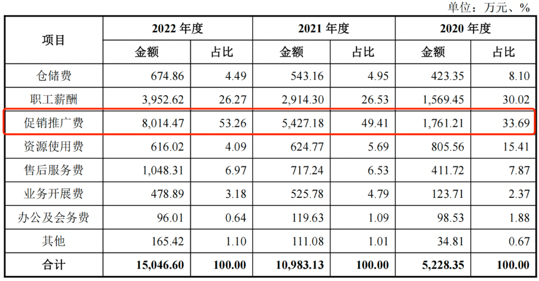 报告期内,美智光电的促销推广费分别为1761.21万元、5427.18万元和8014.47万元,占当期销售费用的比例为33.69%、49.41%和53.26%。