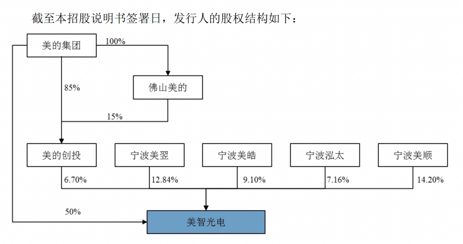招股书显示,美的集团直接及间接控制公司56.7%股份,为公司控股股东,美的集团创始人何享健为公司实际控制人。