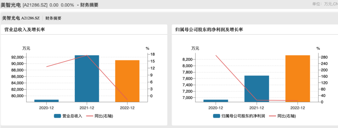 报告期内,美智光电的营业收入分别为7.88亿元、9.26亿元和9.11亿元,同比增长12.58%、17.52%和-1.65%;同期归母净利润分别为6935.13万元、7689.79万元和8327.06万元,同比增长291.38%、10.88%和8.29%。