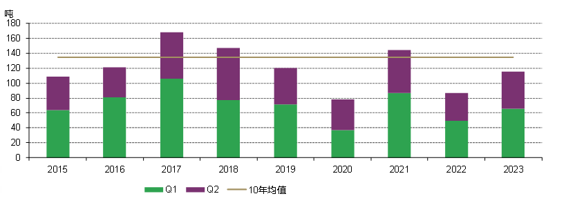今年二季度,全球央行购金需求为103吨,同比减少约七成,主要影响因素是土耳其。在2022年购买了比其他任何央行都多的黄金之后,土耳其从今年3月开始在疯狂抛售黄金,仅在4月就抛售了81吨。