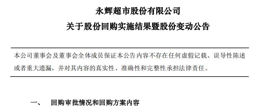有意思的是,重要股东一边减持,永辉超市则一边公告说进行股份回购。