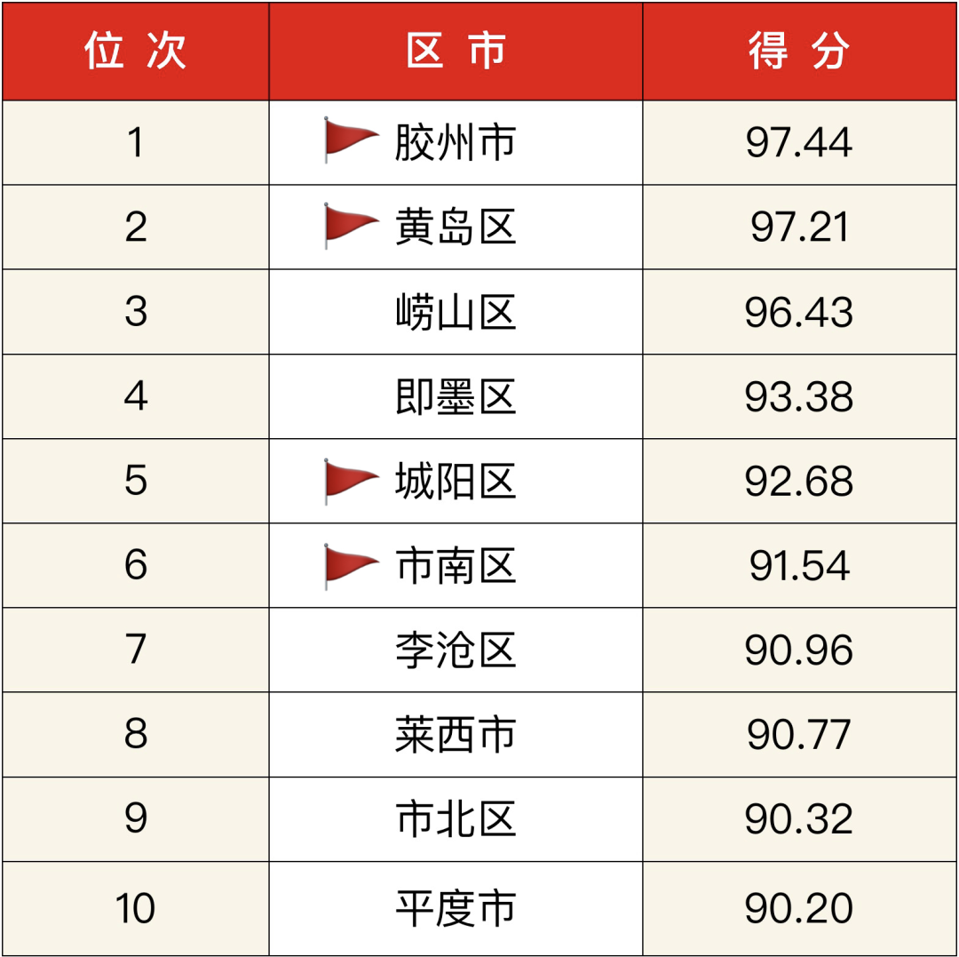考核结果显示,胶州市、黄岛区、崂山区位列前三甲,这也是他们连续第五次包揽“摘星夺旗”考核的前三甲。在这三个头部区市中,胶州无疑是最大的惊喜,首度拿下总成绩第一。