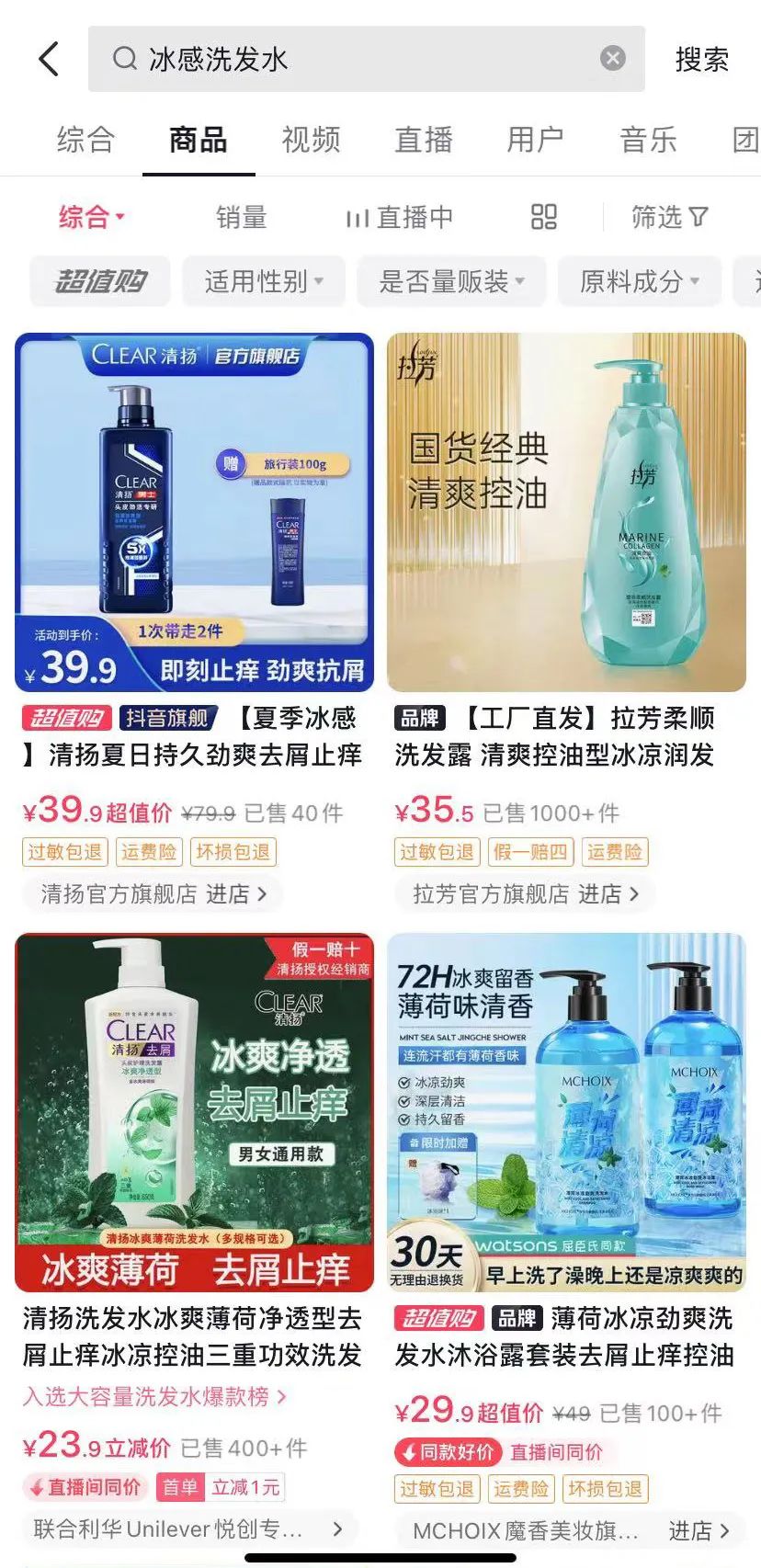 在头皮、身体洗护类目中,还出现了诸如冰感止汗露、冷感湿巾的身影。