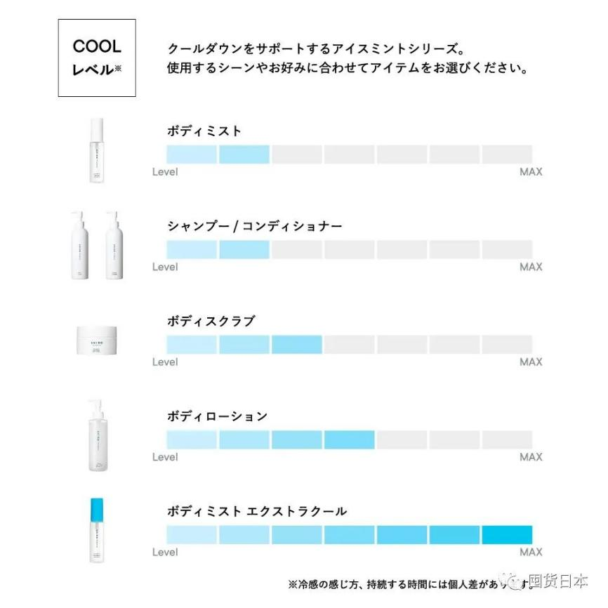冰薄荷冷感系列自带6种不同程度的凉感梯度,可供消费者在户外、室内等不同场景使用自行选择。